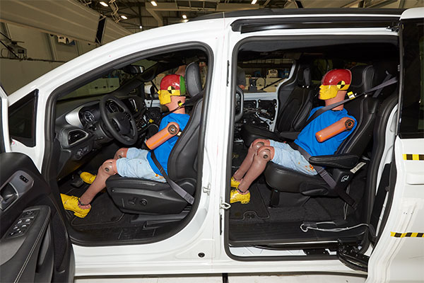 • A SID-IIs dummy the size of a small woman or 12-year-old child is belted in the driver seat, and another is belted in the second row behind the driver.