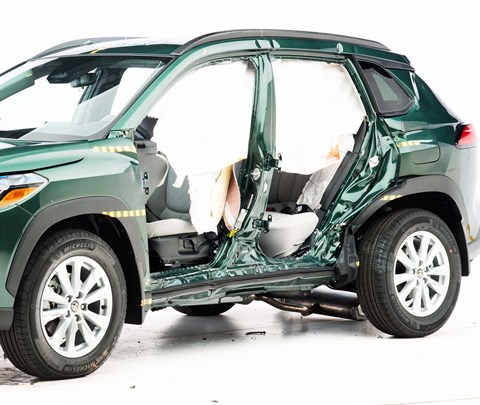 The Toyota Corolla Cross was introduced in the 2022 model year. Two passenger-side small overlap frontal tests of the Corolla Cross were conducted, one by the Institute and the other by Toyota. Ratings are based on both tests, but the vehicle specifications shown below are based on the Institute’s test.