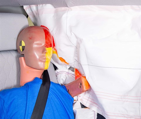 The frontal and side curtain airbags worked well together to keep the head from coming close to any stiff structure or outside objects that could cause injury.