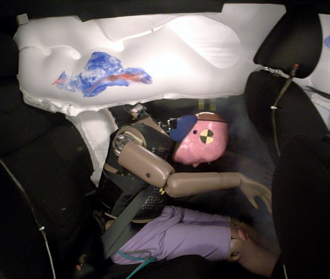 The frontal and side curtain airbags worked well together to keep the head from coming close to any stiff structure or outside objects that could cause injury.